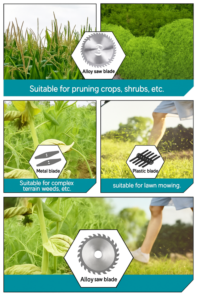 • Metal Blade – for dense weeds and brush.